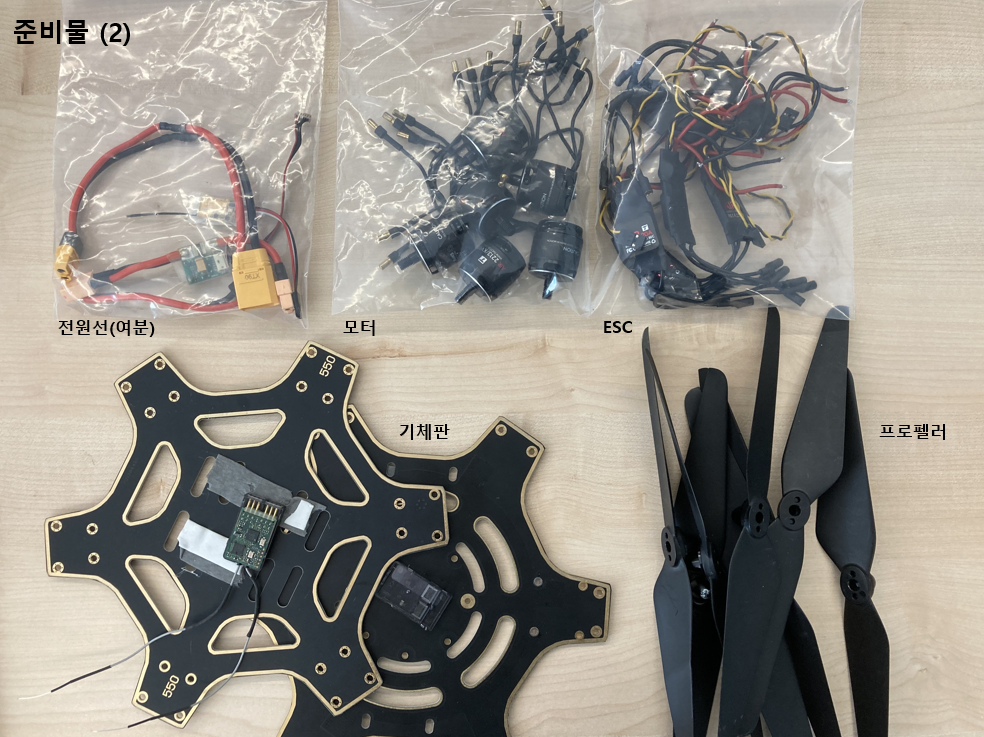 - 이외 : 무선조종기, 드론 다리 (아래 사진에는 없지만 이후 등장 예정)